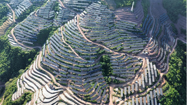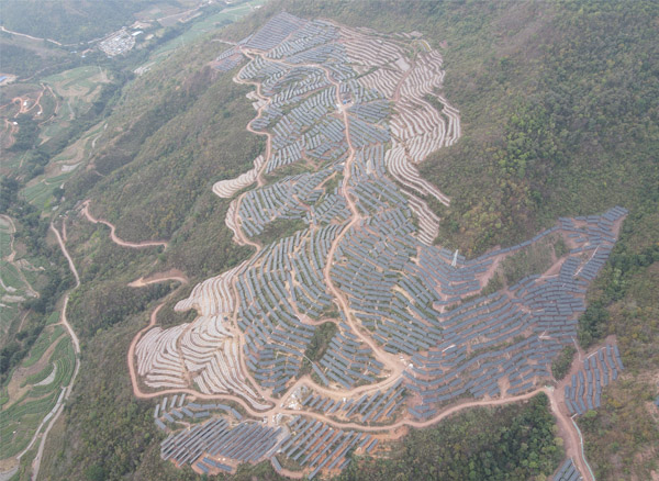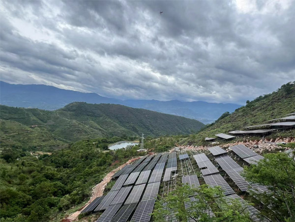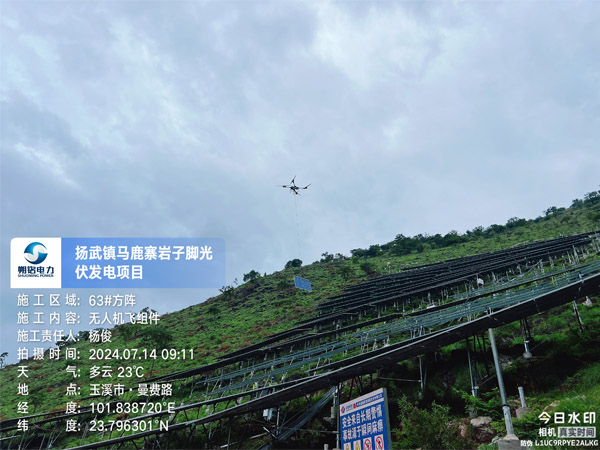 本項(xiàng)目利用新平縣附近山地,建設(shè)規(guī)模為安裝容量185.54MWp的農(nóng)光互補(bǔ)光伏電站,新建 220kV 升壓站一座。場址坐標(biāo)約為北緯23.77650248°N,東經(jīng)101.86208577°E,場址光伏總面積約2966.184畝(197.7456公頃)本工程規(guī)劃安裝容量185.54MWp,采用分塊發(fā)電、集中并網(wǎng)方案。電池組件采用550Wp單晶硅雙面電池組件,主要采用正南方位角,傾角為 25°固定安裝在支架上。太陽電池陣列共 由58個子方陣組成,每個子方陣由若干路太陽電池組串并聯(lián)而成。每個太陽電池子方陣由 太陽電池組串、逆變設(shè)備及升壓設(shè)備構(gòu)成。本工程共 58 個光伏發(fā)電單元,每子方陣設(shè)置一臺3150kVA(或2500kVA、2000kVA、1600kVA)箱變。多個光伏發(fā)電單元35kV側(cè)并聯(lián)后接入 升壓站,共設(shè)置7回集電線路。發(fā)電單元內(nèi)每28塊光伏組件串聯(lián)為一個支路,約25個支路 接入一臺320kW組串式逆變器,最終接至箱變升壓至35kV。
