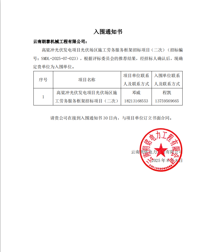 上一篇:入圍通知書----云南國凱建設工程有限公司